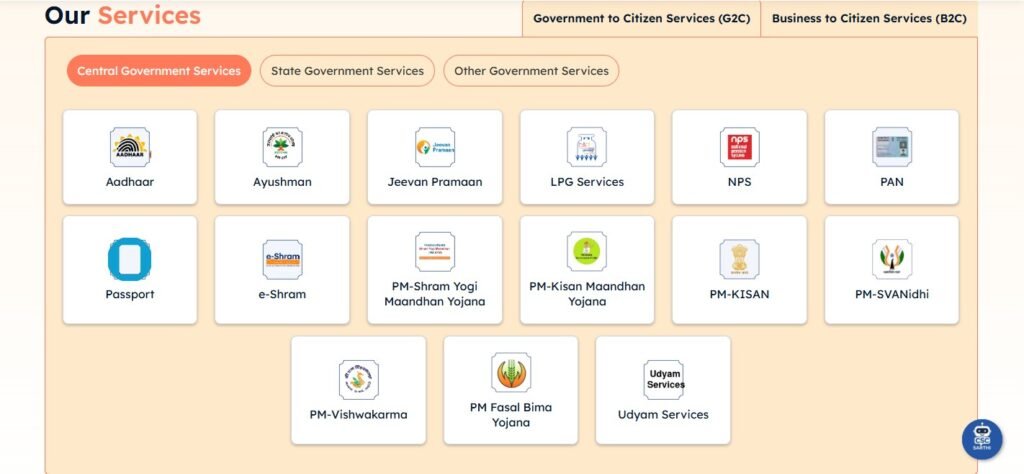 यहाँ G2C और B2C दोनों तरह की सेवाएँ मिलती हैं। यानी सरकारी काम और निजी सेवाएँ—दोनों एक ही जगह।