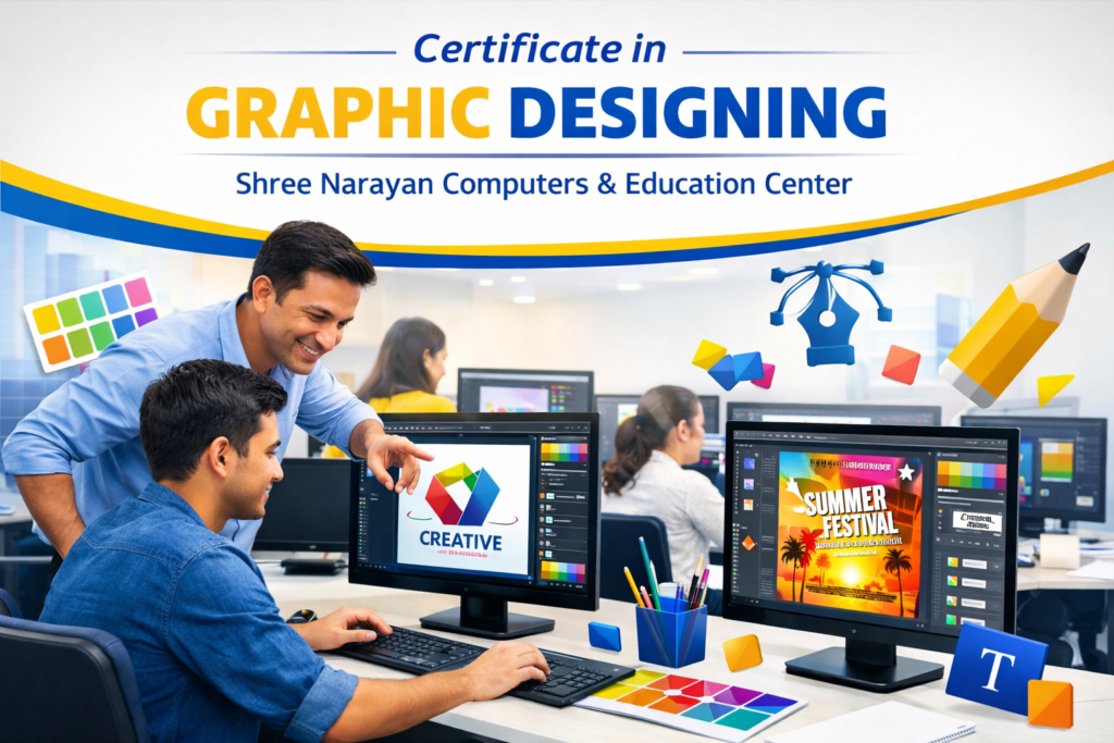 Courses like the Certificate in Graphic Designing at Shree Narayan Computers & Education Center aim to prepare students for this rapidly evolving industry. By learning modern tools, design principles, and real-world project workflows, students gain the confidence to start professional work immediately after completing the program.