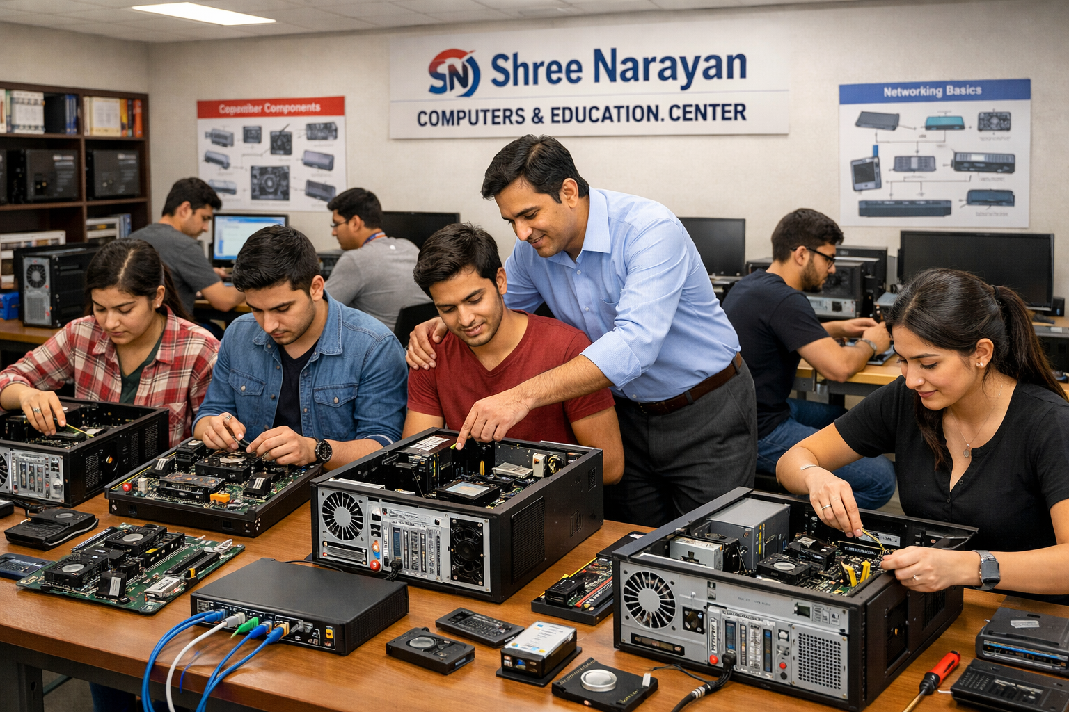 Shree Narayan Computers & Education Center has built a reputation as a trusted name in technical education and skill development, especially in the field of computer hardware. The institute isn’t just another training center—it’s a place where students are guided step-by-step toward becoming confident professionals. What sets it apart is its clear mission: to make quality technical education accessible to everyone, regardless of their background or prior experience.