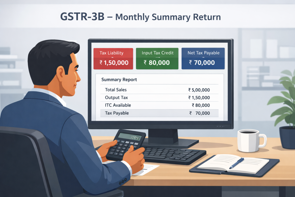 GSTR-3B is crucial because it’s where you actually pay your taxes. While GSTR-1 reports your sales data, GSTR-3B determines how much tax you owe after adjusting for input tax credit. This makes it one of the most important returns in the GST framework.
