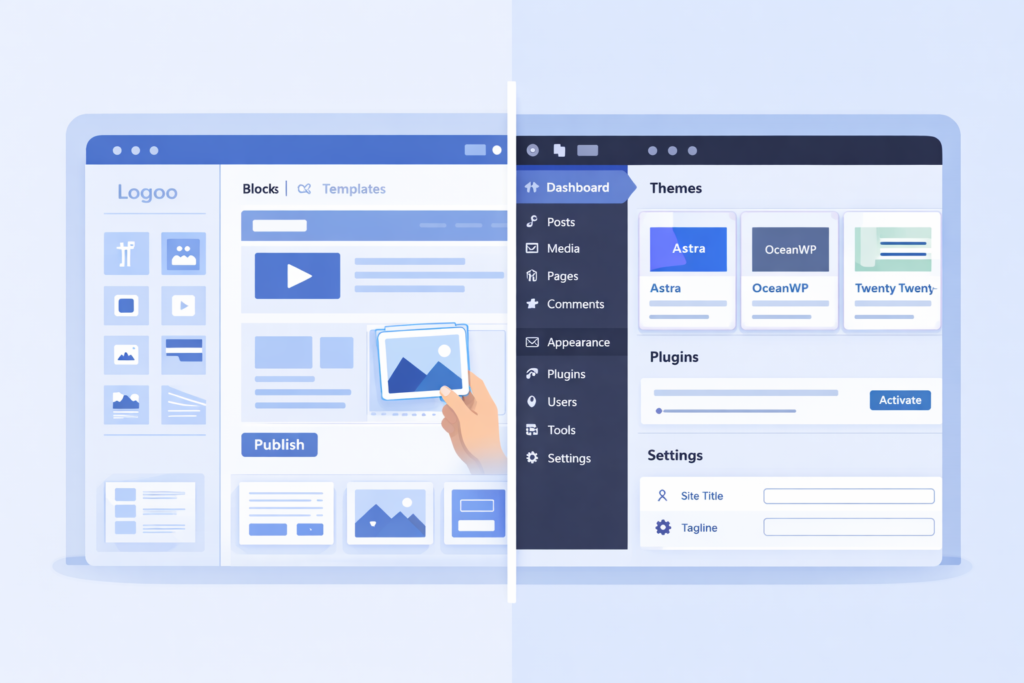 First, install WordPress through your hosting provider. Then choose a theme, which controls your site’s appearance. After that, install plugins to add features like SEO, security, and forms.