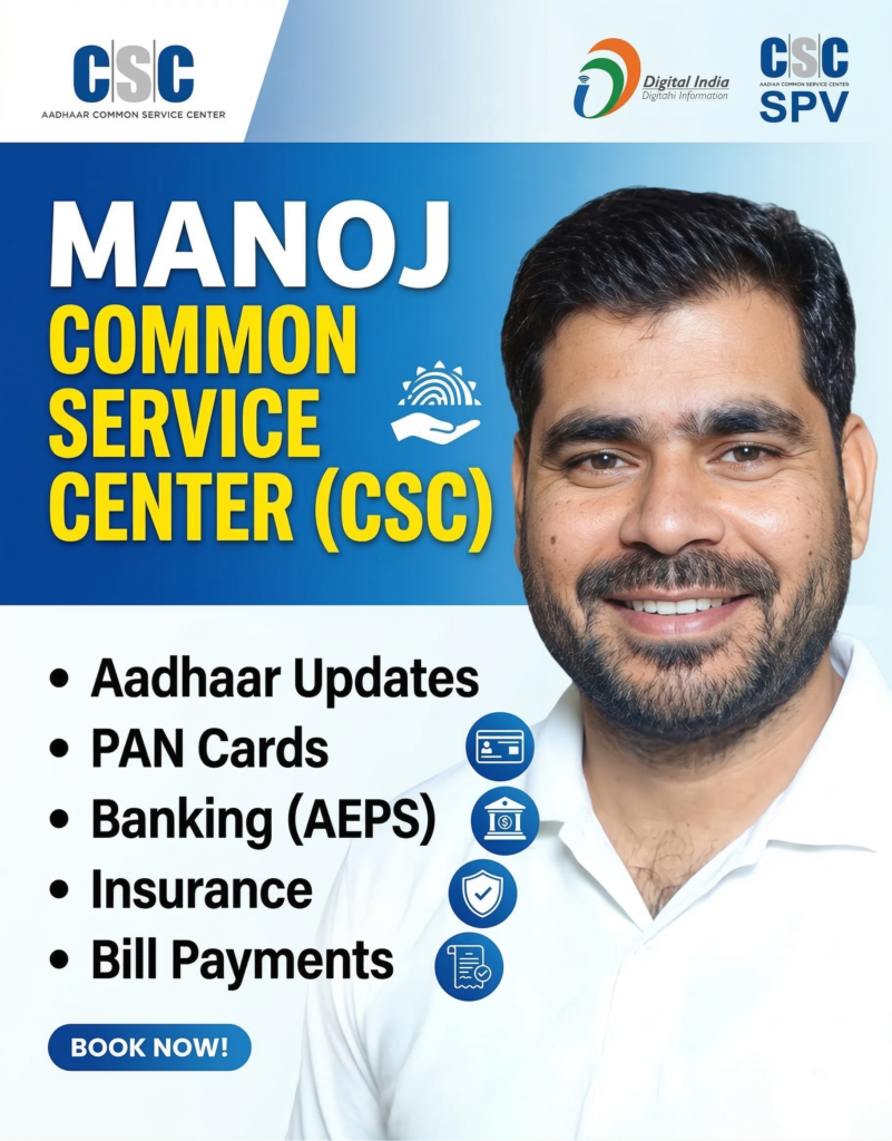 इस तरह Manoj CSC Center जैसे केंद्र न केवल नागरिकों को सुविधाएँ देते हैं बल्कि स्थानीय युवाओं को स्थायी और सम्मानजनक आय का अवसर भी प्रदान करते हैं।
