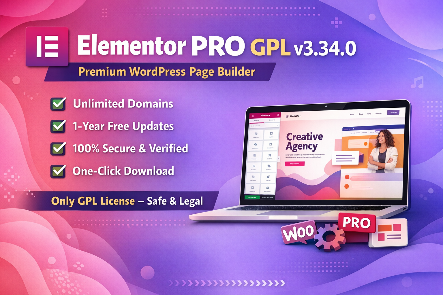 Elementor PRO GPL v3.34.0 is a premium WordPress page builder with advanced PRO widgets and ready-made templates. Build professional websites without coding. Includes unlimited domain usage, 1-year free updates, secure GPL download, and instant one-click access.