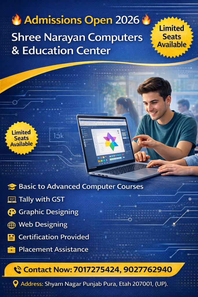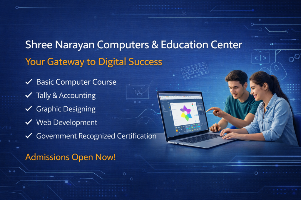 In today’s fast-paced world, digital skills are no longer optional—they are essential. Whether you want a stable job, a promotion, or even to start your own business, computer literacy is the key that unlocks endless opportunities. That’s where Shree Narayan Computers & Education Center steps in. It’s not just an institute; it’s a stepping stone toward a brighter, more confident future.